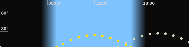Höchster Sonnenstand (Kulmination)11:53 Uhr (h = 23.3°)