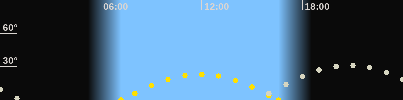 | Höchster Sonnenstand (Kulmination) | 11:53 Uhr (h = 23°) |