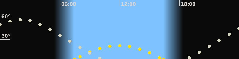 | Höchster Sonnenstand (Kulmination) | 11:54 Uhr (h = 20.8°) |