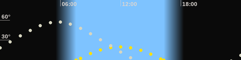 | Höchster Sonnenstand (Kulmination) | 11:55 Uhr (h = 19.8°) |