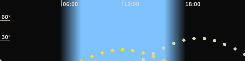 | Höchster Sonnenstand (Kulmination) | 12:00 Uhr (h = 16.9°) |