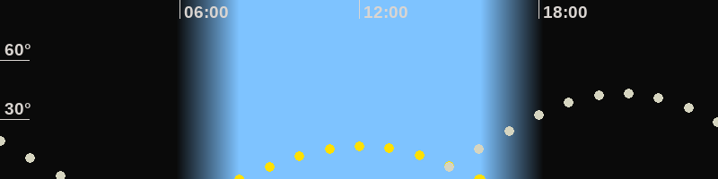 | Höchster Sonnenstand (Kulmination) | 12:01 Uhr (h = 16.7°) |