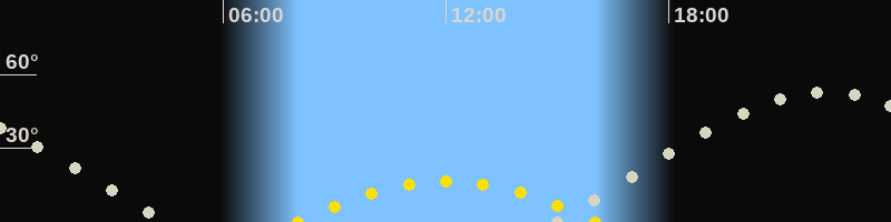 | Höchster Sonnenstand (Kulmination) | 12:02 Uhr (h = 16.5°) |