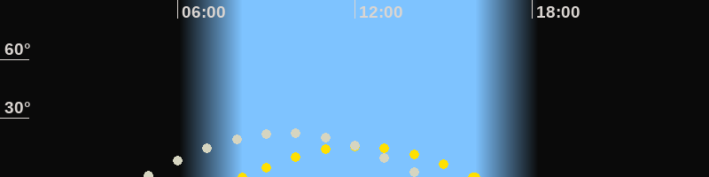 | Höchster Sonnenstand (Kulmination) | 12:09 Uhr (h = 15.8°) |