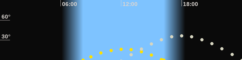 | Höchster Sonnenstand (Kulmination) | 12:14 Uhr (h = 16.3°) |