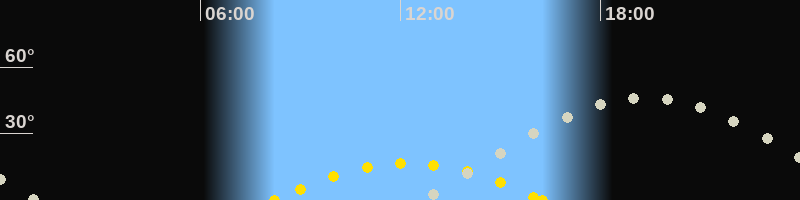 | Höchster Sonnenstand (Kulmination) | 12:14 Uhr (h = 16.5°) |