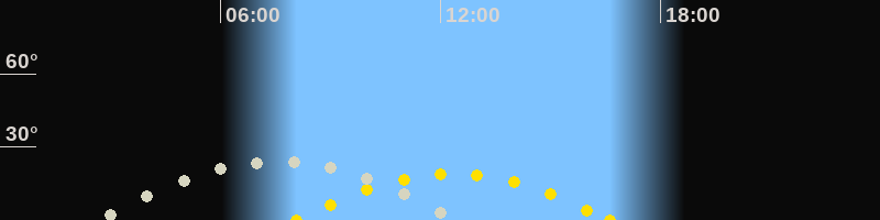 | Höchster Sonnenstand (Kulmination) | 12:20 Uhr (h = 18.9°) |
