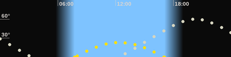 | Höchster Sonnenstand (Kulmination) | 12:24 Uhr (h = 23°) |