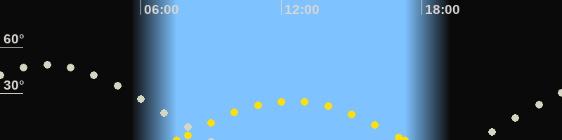 | Höchster Sonnenstand (Kulmination) | 12:24 Uhr (h = 25.2°) |