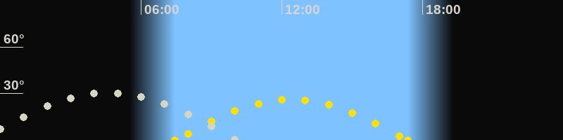 Höchster Sonnenstand (Kulmination)12:24 Uhr (h = 26.2°)