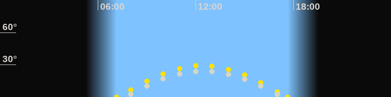 | Höchster Sonnenstand (Kulmination) | 12:23 Uhr (h = 29.4°) |