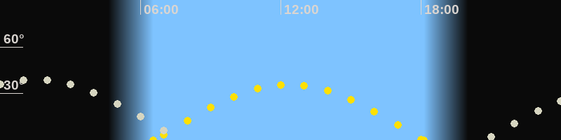 Höchster Sonnenstand (Kulmination)12:20 Uhr (h = 35.9°)