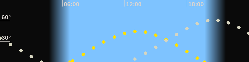 | Höchster Sonnenstand (Kulmination) | 13:13 Uhr (h = 44.5°) |