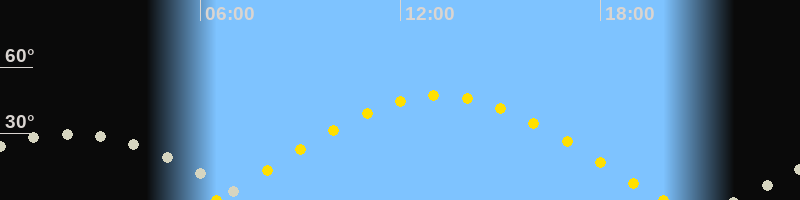 Höchster Sonnenstand (Kulmination)13:11 Uhr (h = 47.1°)