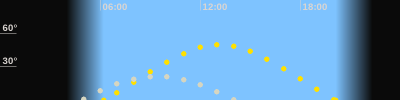 | Sonnenaufgang | 06:12 Uhr im Osten (αAz = 72.3°) |