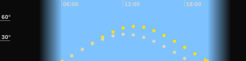 | Sonnenaufgang | 06:04 Uhr im Osten (αAz = 70.1°) |