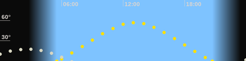 | Höchster Sonnenstand (Kulmination) | 13:06 Uhr (h = 56.8°) |