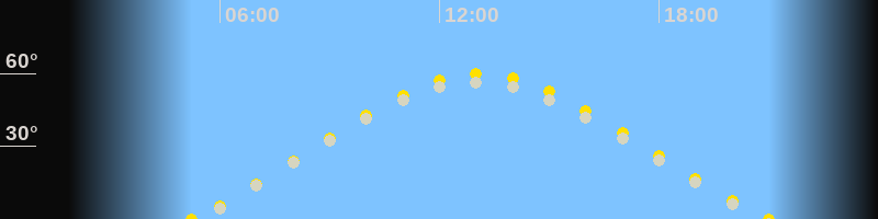 Höchster Sonnenstand (Kulmination)13:06 Uhr (h = 59.8°)