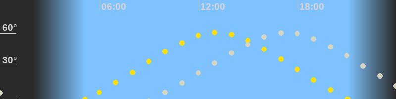 | Höchster Sonnenstand (Kulmination) | 13:07 Uhr (h = 60.7°) |
