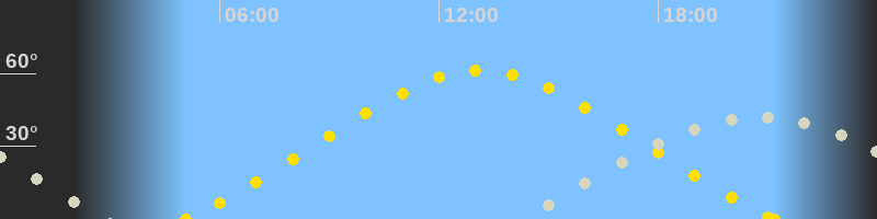 | Höchster Sonnenstand (Kulmination) | 13:08 Uhr (h = 61.3°) |