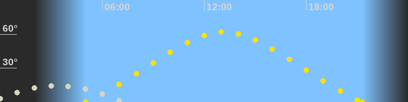 | Höchster Sonnenstand (Kulmination) | 13:09 Uhr (h = 62.2°) |