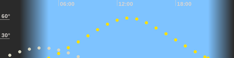 | Höchster Sonnenstand (Kulmination) | 13:09 Uhr (h = 62.3°) |