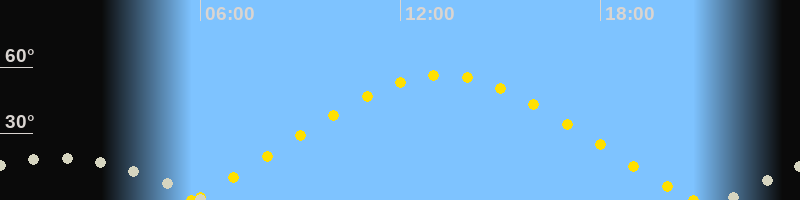 | Höchster Sonnenstand (Kulmination) | 13:16 Uhr (h = 56.3°) |