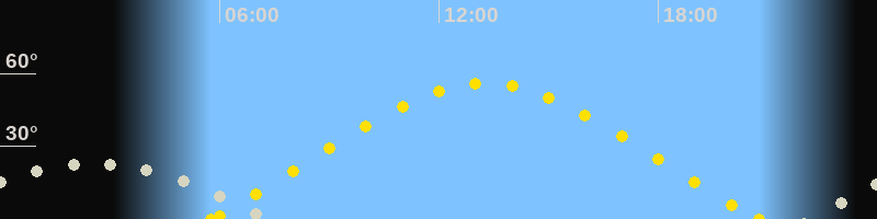| Höchster Sonnenstand (Kulmination) | 13:16 Uhr (h = 56°) |