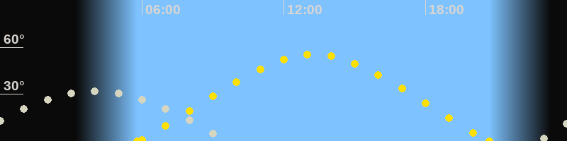 | Höchster Sonnenstand (Kulmination) | 13:15 Uhr (h = 55.5°) |