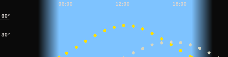 | Sonnenaufgang | 06:13 Uhr im Osten (αAz = 71.8°) |