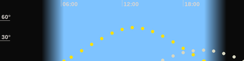 | Sonnenaufgang | 06:16 Uhr im Osten (αAz = 72.9°) |