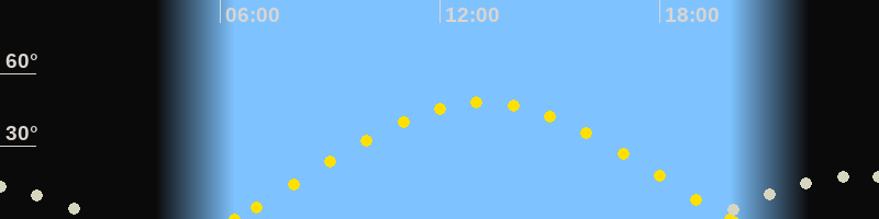 | Höchster Sonnenstand (Kulmination) | 13:10 Uhr (h = 48°) |