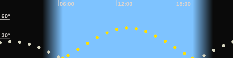 | Höchster Sonnenstand (Kulmination) | 13:09 Uhr (h = 46.9°) |
