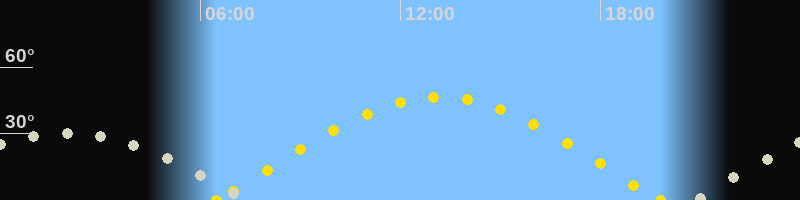 Höchster Sonnenstand (Kulmination)13:09 Uhr (h = 46.5°)