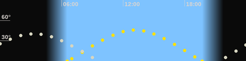| Sonnenaufgang | 06:32 Uhr im Osten (αAz = 78.8°) |