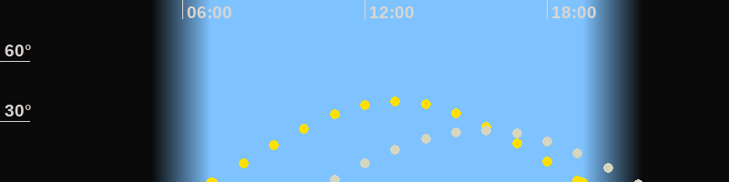 | Sonnenaufgang | 06:55 Uhr im Osten (αAz = 87.9°) |