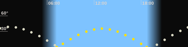 | Sonnenaufgang | 07:14 Uhr im Osten (αAz = 95.2°) |