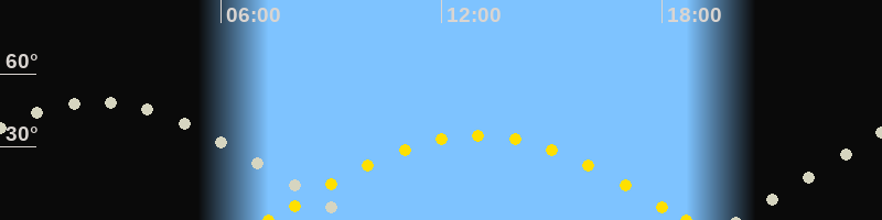 | Sonnenaufgang | 07:17 Uhr im Osten (αAz = 96.5°) |