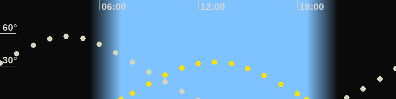 | Sonnenaufgang | 07:20 Uhr im Osten (αAz = 97.7°) |