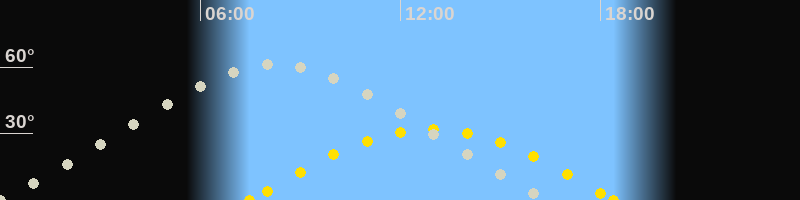 | Höchster Stand (Kulmination) | 08:14 Uhr (h=61.5°) |