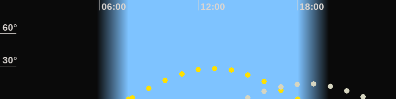 | Höchster Sonnenstand (Kulmination) | 12:54 Uhr (h = 28°) |