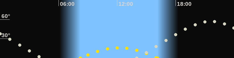 | Höchster Sonnenstand (Kulmination) | 12:11 Uhr (h = 15.9°) |
