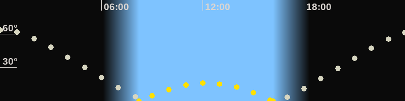 | Höchster Sonnenstand (Kulmination) | 12:12 Uhr (h = 16.2°) |