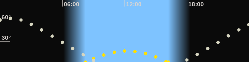 | Höchster Sonnenstand (Kulmination) | 12:13 Uhr (h = 16.2°) |