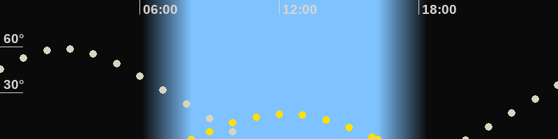 | Höchster Sonnenstand (Kulmination) | 12:14 Uhr (h = 16.4°) |
