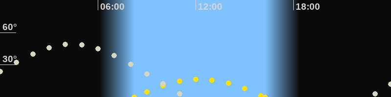 | Höchster Sonnenstand (Kulmination) | 12:15 Uhr (h = 16.6°) |