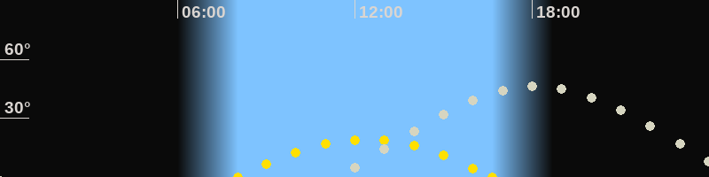 | Höchster Sonnenstand (Kulmination) | 12:21 Uhr (h = 19.3°) |