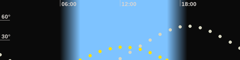 | Höchster Sonnenstand (Kulmination) | 12:21 Uhr (h = 19.5°) |