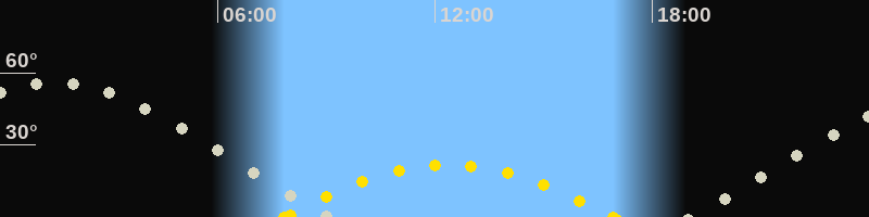 | Höchster Sonnenstand (Kulmination) | 12:23 Uhr (h = 21.8°) |