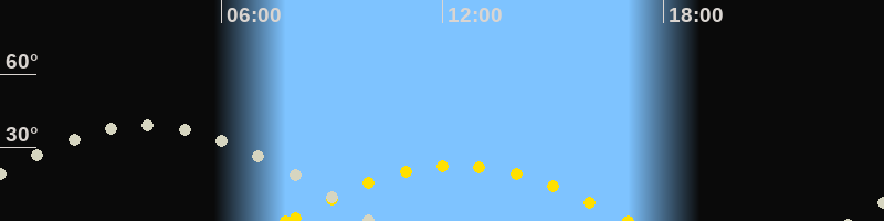 | Höchster Sonnenstand (Kulmination) | 12:23 Uhr (h = 22.6°) |